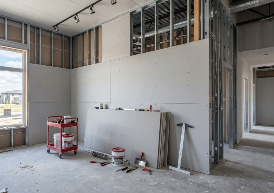 Flexible Raumlösungen durch modernen Trockenbau effizient, sauber und präzise umgesetzt.